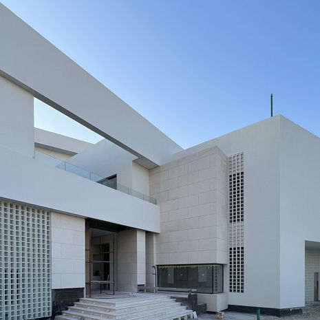 This multifamily private beach resort was completed in the southern coast of Kuwait in early 2020. The complex consists of a main seafront Chalet, three individual single family smaller Chalets, and a separate building for staff. With limited seaside frontage and an exceptionally deep plot size, the site plan was devised in a way to allow all units to have maximum views of the ocean or of the internal court consisting of large green areas and an expansive swimming pool.The overall mood conveys the Spirit of a Mediterranean resort where spaces are interwoven through walkways, extensive landscaping and private patios.